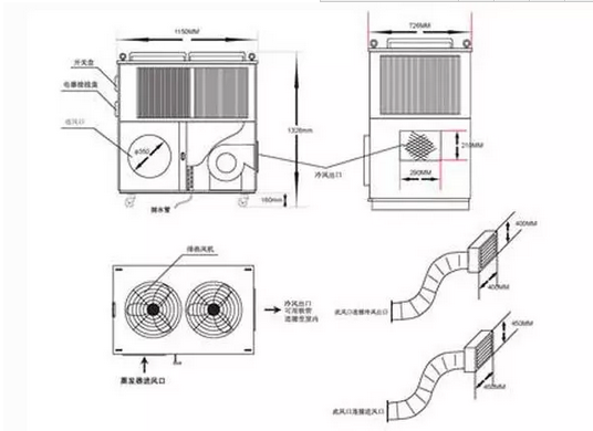 3)空调占地面积 空调选用4台空调,单台空调占地面积为2.1M平方,空调为全正面维护,实际占地为空调本身的一倍就可以约为4M平方。4台空调共16M平方。