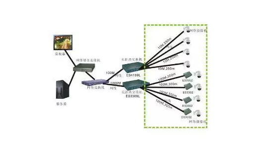 最好的就是选择交换机和终端都可以支持POE供电的,这样POE交换机可以直接通过网线接到POE供电的无线AP和网络摄像机上。