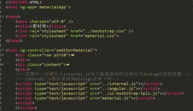 编辑器的自定义弹窗是一个iframe,在这个iframe中我们可以使用任何框架,本次开发中由于需要在弹窗中展现素材库的内容、分类还要使用分页,所以在弹窗中我又构建了一个angular环境:
