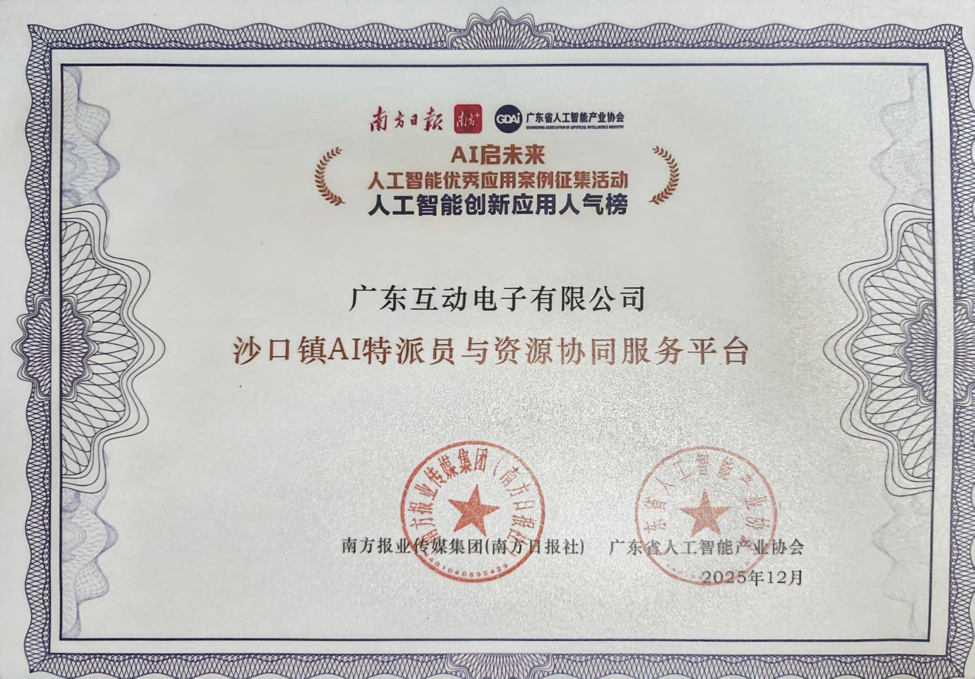 12月14日,本次活动圆满落幕。我司凭借扎实的技术积累与创新实践脱颖而出,所申报的《沙口镇AI特派员与资源协同服务平台》成功入选“人工智能创新应用人气榜”;另一参评项目《纺织业AI面料表面缺陷检测系统》也获得网络投票第六名的佳绩。在颁奖典礼及主会场活动中,清远市工商联相关领导及我司董事长刘展海共同出席。