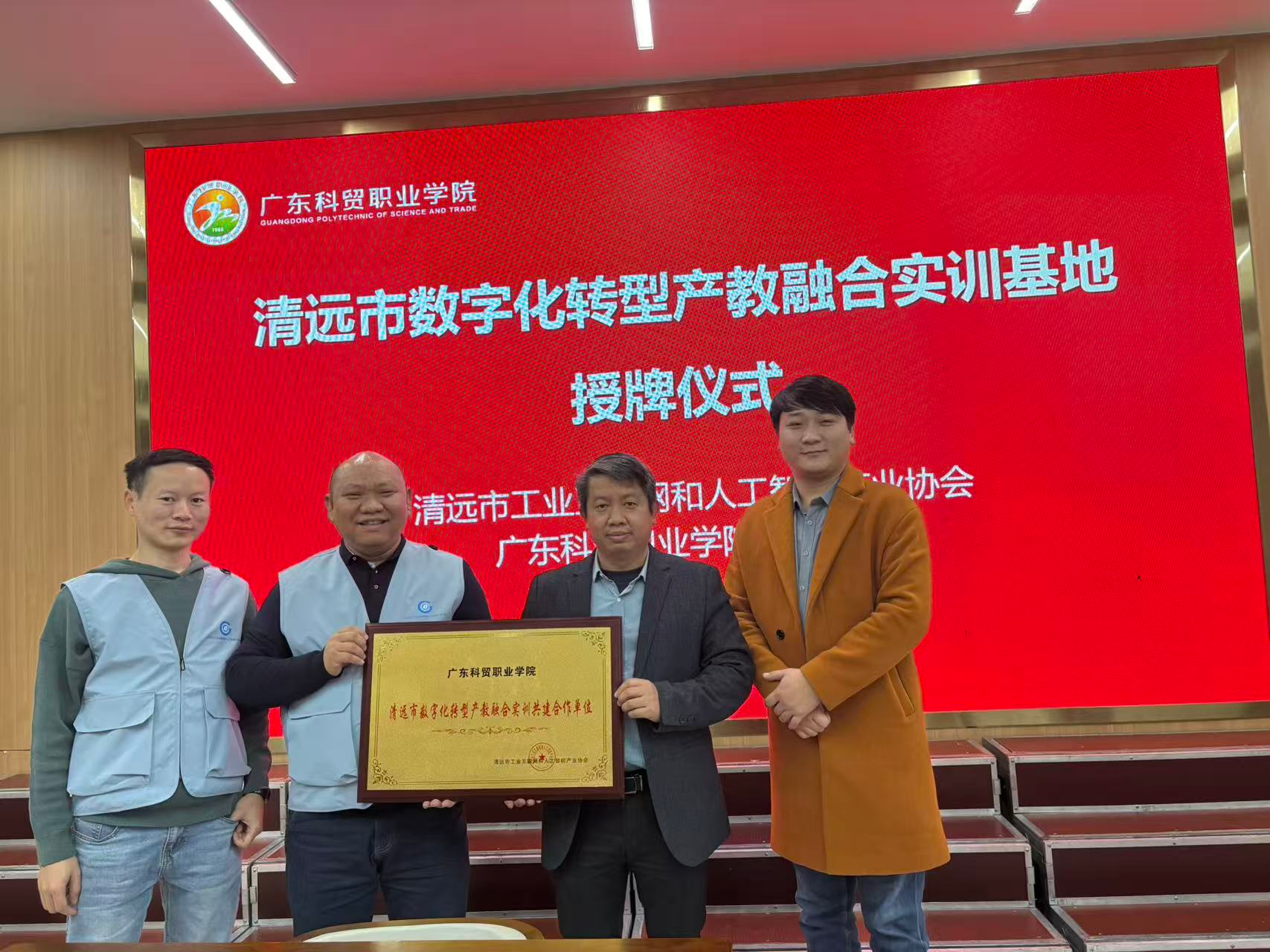 2025年12月15日,在清远市工业互联网与人工智能产业协会的推动下,我司负责人兼协会专家委主任刘展海带队前往多所院校及企业,开展“清远市数字化转型产教融合实训基地”授牌仪式,旨在深化校企合作、产教融合,推动数字技术与实体经济深度融合,为区域产业升级培育高素质技术技能人才。