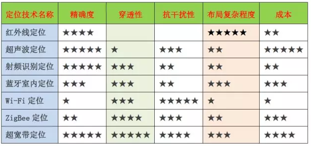 下面我们就从精确度,穿透性,抗干扰性,布局复杂程度,成本5个方面全方位来比较一下市面上流行的几种室内定位手段。