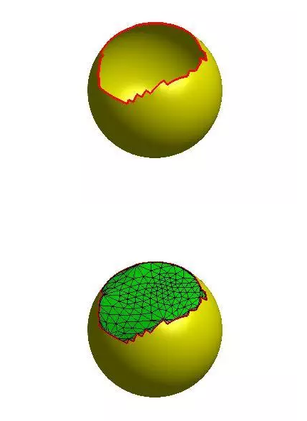 检测孔洞边界和初始化补洞网格方法与以前介绍的方法相同。由于初始化补洞网格无法与原始孔洞周围的网格有效融合,因此需要调整补洞网格的顶点位置使得补洞网格与原始网格之间光滑过渡。