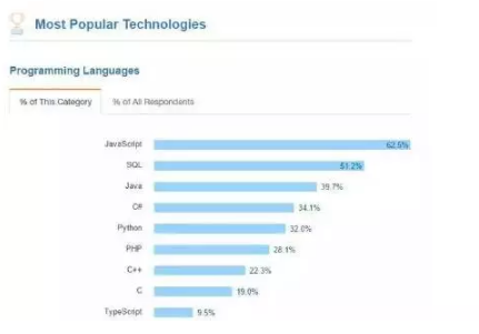 2017年1月,Stack Overflow年度开发者调研一共访问了64000个程序员,发现JavaScript已经连续5年成为最流行的编程语言。