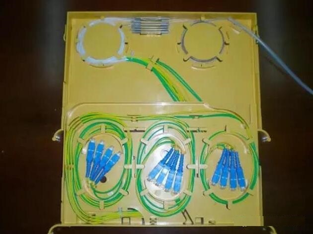 3)特殊情况的处理,如个别光纤过长或过短时,可将其放在最后单独盘绕;带有特殊光器件时,可将其另盘处理,若与普通光纤共盘时,应将其轻置于普通光纤之上,两者之间加缓冲衬垫,以防挤压造成断纤,且特殊光器件尾纤不可太长。