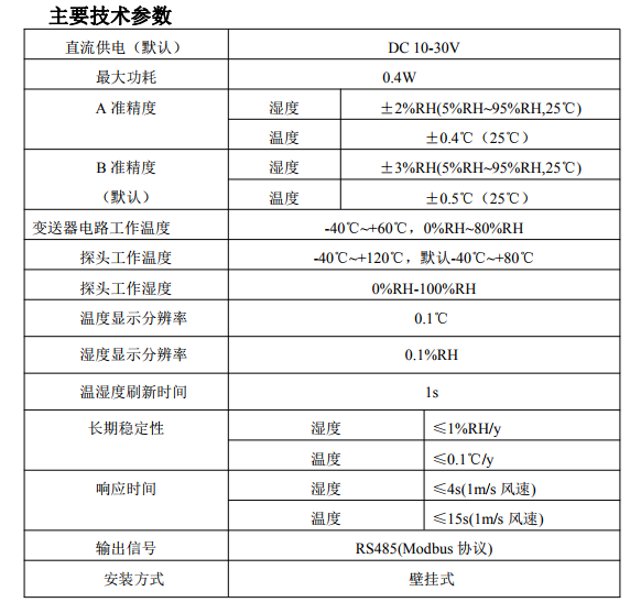 本温湿度变送器采用精装探头,探头内部做了防水处理,在提高反应灵敏度的同时,可长期应用于高湿度场合。探头内外置可选,方便安装固定。输出信号类型分为RS485(Modbus-RTU协议)\4-20mA\0-5V\0-10V等。