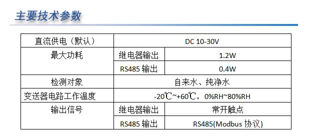 本产品为接触式水浸传感器,采用液体电感特性进行检测(专利技术),当水接触到传感器探头时,主控芯片通过计算磁场变化准确判定状态并作出处理。主控芯片采用美国进口芯片,误判率为”0”,可接点式探头、普通漏水绳等。甚至可以区别纯净水与自来水,默认为检测自来水。详见选型表。