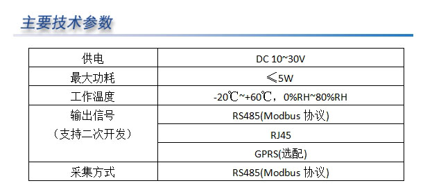 设备可将现场数据采集后进行判断用于现场声光报警,报警限值可独立控制也可短信查询实时状态。数据可通过GPRS、以太网、RS-485三种方式同时上传,考虑到使用现场信号可能不稳定,设备内置了数据存储,可实现历史数据保存和续传。本公司免费提供监控平台软件、免费的环境监控云平台、免费的手机环境监控APP,对于二次开发客户本公司免费提供SDK开发包。