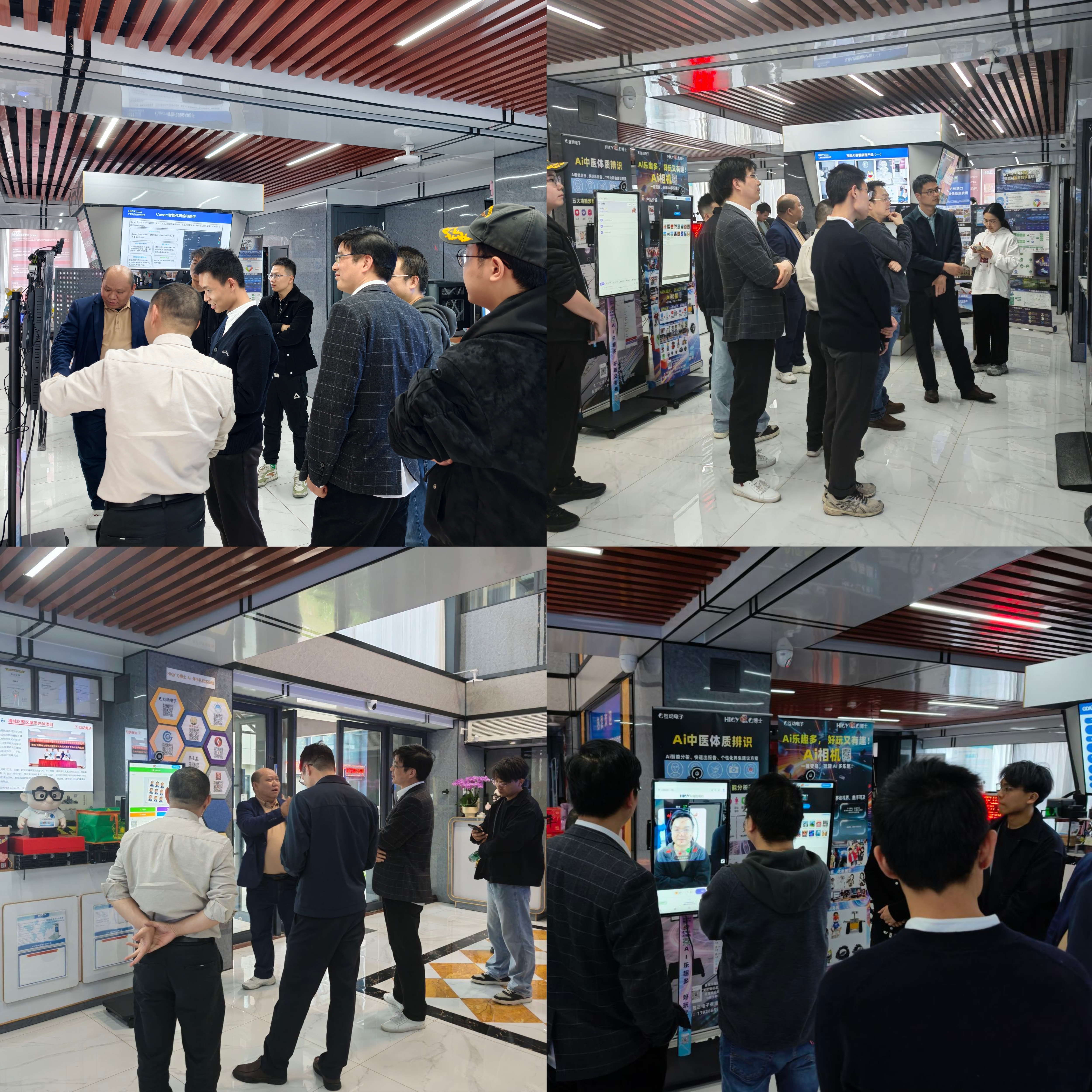 座谈会后,调研组参观了我司展厅,现场体验了“HIQY-Q博士-AI相机”等前沿人工智能技术应用。从 AI 中医体质辨识、AI 相机趣味拍摄到 AI 病虫害识别,科技与生活的深度融合,让大家频频驻足、深入交流。