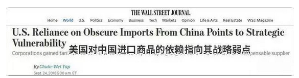 《华尔街日报》9月24日刊文表示,特朗普政府对一些从中国进口的特定商品采取关税豁免,印证了美国对中国的依赖,更暴露了自身的战略弱点。