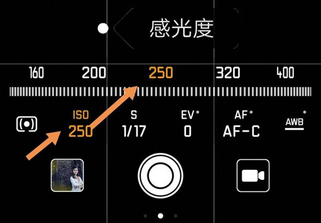 手机调整感光度的方法,见图: