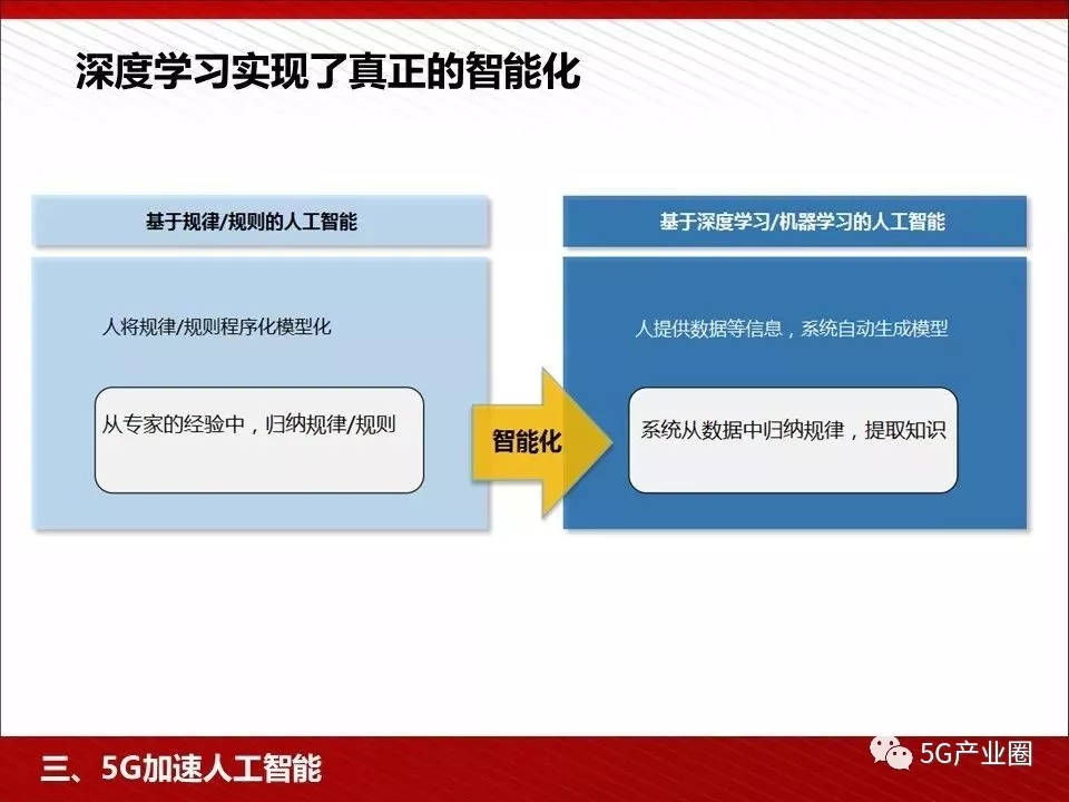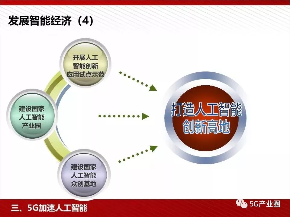 5G赋能 5G为人工智能与智能制造赋能 2019-07-23 16:13:36 点击数: (本文属知识库及科普性质,资料来源互联网,版权归原作者所有。) 近几年,全球有两大科技领域越来越热:一个是人工智能,另一个是5G。两者都是能够改变时代、改变社会、改变经济的颠覆性技术。 今天,我们分享一份来自王喜文博士的PPT——《5G为人工智能与智能制造赋能》。 这个课件是王喜文博士给地方政府和企业家讲座的完整内容,通过对5G、人工智能、智能制造等未来科技的分享,希望有助于大家头脑风暴、拓展思路、开拓视野。 (本文属知识库及科普性质,资料来源互联网,版权归原作者所有)