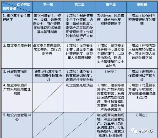 各级信息系统安全保护管理措施要求:
